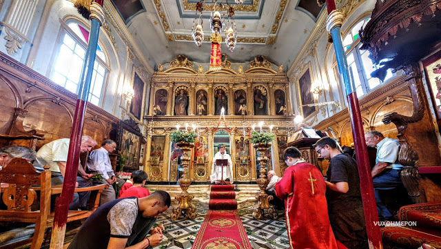Μετά την θεία Λειτουργία έγινε ο καθιερωμένος Εσπερινός της Γονυκλισίας και η λιτή της Εικόνας της Αγίας Τριάδος, οι δε εκκλησιαζόμενοι, κατά το γονάτισμά τους, έκαναν -κατά την πατροπαράδοτη συνήθεια- σταυρουδάκια από τα ευωδιαστά κλαδάκια της μερτιάς που βρίσκονταν στο δάπεδο. Διανεμήθηκαν σε όλους -κατά τα ειωθότα- τα λεγόμενα “ματζέτα”, δηλαδή μικρές ανθοδέσμες με μυρτιά και γαρύφαλλα!