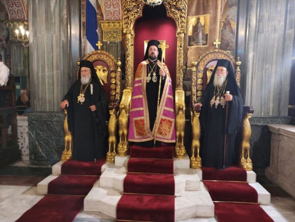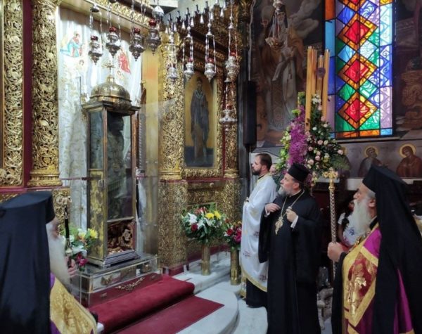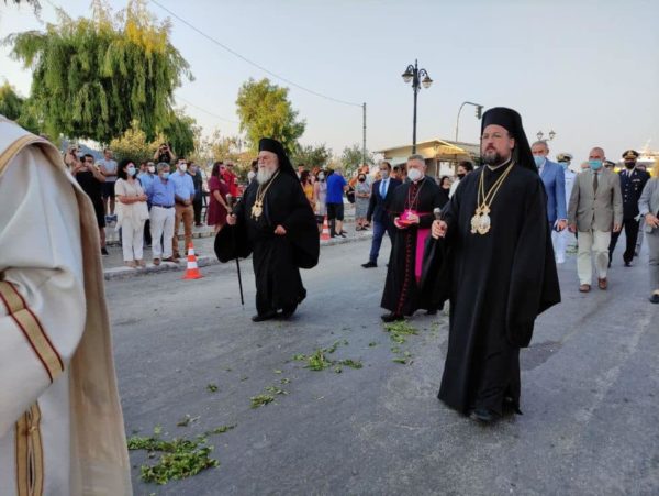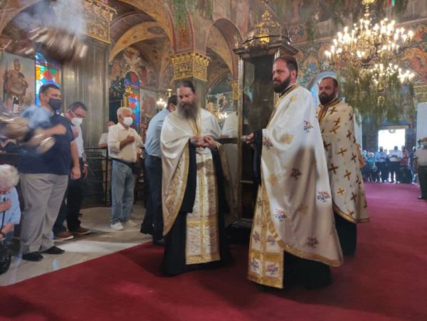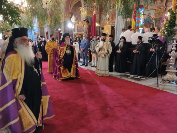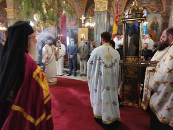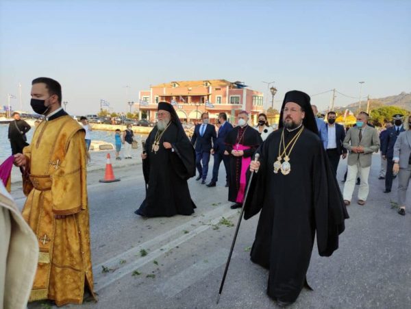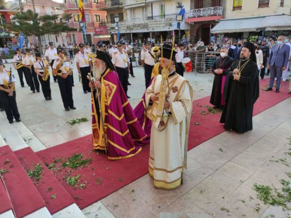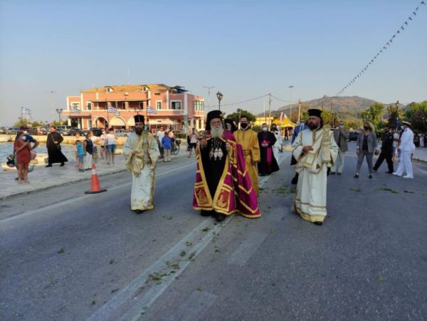 Πραγματοποιήθηκε σήμερα, 23.8.2021, στις 7 το απόγευμα η επίσημη κάθοδος του Μητροπολίτη Ζακύνθου κ. Διονυσίου από την Ιερά Μονή στον Ιερό Ναό. Αμέσως μετά, τελέστηκε η δοξολογία με περιφορά του σεπτού Σκηνώματος του Αγίου Διονυσίου, τέθηκε στη “Θύρα” του, όπου και προσκυνείται, έγινε δέηση ενώπιόν του και ο Αρχιερατικός Εσπερινός. Συμπροσευχόμενοι ήταν ο Σεβασμιώτατος Μητροπολίτης Δωδώνης κ. Χρυσόστομος και ο Σεβ. Μητροπολίτης Αξώμης Αιθιοπίας κ. Δανιήλ, καταγόμενος εκ Ζακύνθου.