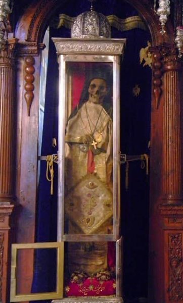 Σημειωτέον ότι το ιερό λείψανο μετακομίσθηκε στη Ζάκυνθο και δη στα Ξεροβούνια Γαϊτανίου, από την Κρήτη, στις 29 Αυγούστου 1669, αμέσως μετά την πτώση του Χάνδακα. Πριν από τον Εσπερινό -κατά τα ειωθότα- έγινε λιτή του λειψάνου και απόθεσή Του στην θύρα της προσκυνήσεώς Του.