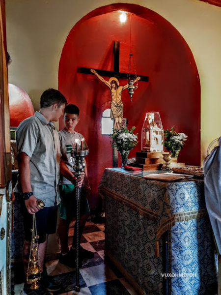 Μετά την Ακολουθία υπήρξαν κεράσματα για όλους, τα οποία ετοίμασαν με πολλή καλοσύνη τα μέλη της οικογένειας Στέλλας Στραβοπόδη, αφοσιωμένης επιμελήτριας της μικρής αυτής ιερής στέγης της Παλαιάς Βλαχέραινας.