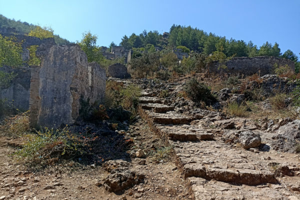 Είναι λέει ο τόπος που ενέπνευσε τον Λουί ντε Μπερνιέρ να γράψει το βιβλίο του «Πουλιά χωρίς φτερά»… Το χωριό όπου κατέρρευσε η ουτοπία της συνύπαρξης. Μα σε εσένα καθώς αγκομαχάς ανηφορίζοντας στο βράχο ανάμεσα στα ερείπια, σου ‘ρχεται στο νου ο στίχος από τις «Τρωάδες» του Ευριπίδη. Σα να ανιστορήζεις την Εκάβη στα ερείπια να φωνάζει: «Τώρα που μας παραχώσαν να δεις τι θα έχουν να λένε οι ποιητές για εμάς…».