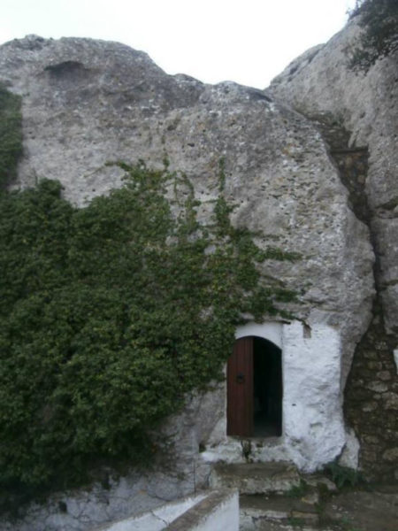 Λίγο πιο κάτω βρίσκεται η Κερά Σπηλιώτισσα, που είναι ναός αφιερωμένος στην Παναγία. Πρόκειται για ένα μικρό ναό λαξευμένο εξ’ ολοκλήρου στο βράχο μπροστά από το οποίο βρέθηκαν ερείπια αρχαίων εγκαταστάσεων, κατά την παράδοση υπήρχε αρχαίο θέατρο. Πριν από τα σκαλιά που ανεβαίνουν στην εκκλησία διατηρείται αρχαία αφιερωματική επιγραφή στη θεά Δήμητρα και την κόρη της Περσεφόνη που χρονολογείται στον 1ο αιώνα μ.Χ..
