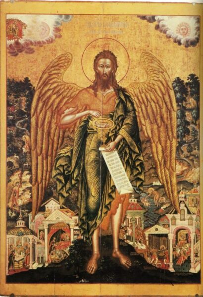 Στην έρημο, λοιπόν, ζούσε ο Άγιος από τα παιδικά του χρόνια. Ασκήτευε, φορούσε ένδυμα από τρίχες καμήλας, η τροφή του αποτελείτο από ακρίδες και μέλι άγριο. Δεν τελείωνε όμως εκεί το σχέδιο του Θεού γι’ αυτόν. Έπρεπε να κηρύξει, να ανοίξει τον δρόμο για τον Μεσσία, να βαπτίσει, να «δείξει» στους ανθρώπους τον Υιό του Θεού. Έτσι, «ἐγένετο ρῆμα Θεοῦ ἐπὶ ᾿Ιωάννην τὸν Ζαχαρίου υἱὸν ἐν τῇ ἐρήμῳ, καὶ ἦλθεν εἰς πᾶσαν τὴν περίχωρον τοῦ ᾿Ιορδάνου κηρύσσων βάπτισμα μετανοίας εἰς ἄφεσιν ἁμαρτιῶν» (Λκ. 3:2-3).