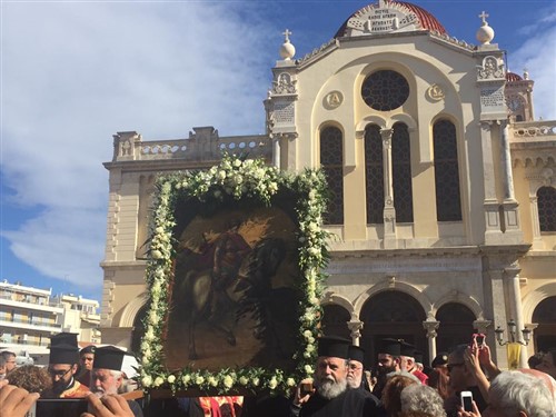 Οι λατρευτικές εκδηλώσεις για τον Άγιο που ο ναός του αποτελεί σήμα κατατεθέν της πόλης του Ηρακλείου βρίσκονται στο ζενίθ τους.