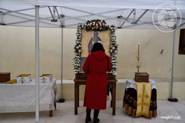 Η προσκύνηση της Ιεράς εικόνας του Αγίου, καθώς και αποτμήματος του αποθησαυρισμένου στον Ναό Ιερού λειψάνου του, πραγματοποιήθηκε στον προαύλιο χώρο του Ναού, όπου υπάρχει και μανουάλι από το οποίο οι πιστοί μπορούν να ανάψουν το κερί τους.