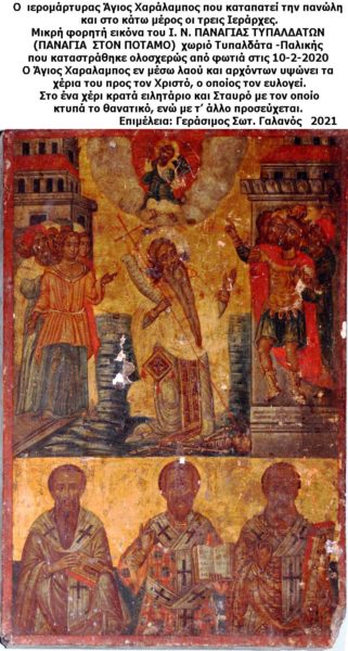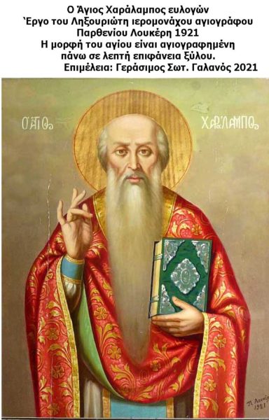 Σε αυτή τη σύντομη αναφορά του, ο γράφων παρουσιάζει, για πρώτη φορά, τρεις εικόνες του Αγίου Χαραλάμπους, από τις πολλές ενδιαφέρουσες στην αξία τους, τις οποίες και έχει καταγράψει, για να τιμήσω τον μεγάλο ιερομάρτυρα του Χριστού, Χαράλαμπο.