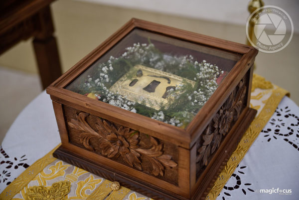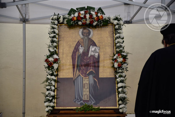 Η προσκύνηση της Ιεράς εικόνας του Αγίου, καθώς και αποτμήματος του αποθησαυρισμένου στον Ναό Ιερού λειψάνου του, πραγματοποιήθηκε στον προαύλιο χώρο του Ναού, όπου υπάρχει και μανουάλι από το οποίο οι πιστοί μπορούν να ανάψουν το κερί τους.