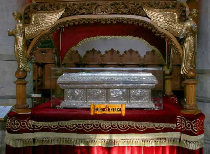 Η λάρνακα με τα ιερά λείψανα της Αγίας Ανυσίας στον Ιερό Ναό του Αγ. Δημητρίου Θεσσαλονίκης.
