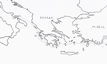 Mία εκδοχή του δρόμου της παρόδου του λειψάνου του Αγίου από τα Μύρα στο Μπάρι