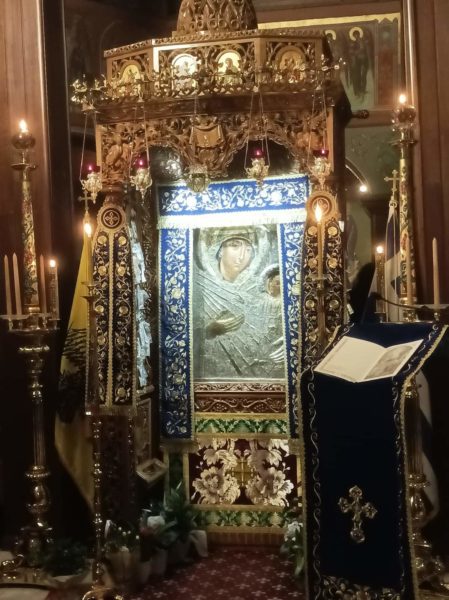 Η Μάνα μας η Παναγία, είναι το παντοτεινό σκαλοπάτι που πατάει ο άνθρωπος για να βρει τον κατ’ εικόνα και ομοίωση Δημιουργό του. Είναι αυτή η θνητή γυναίκα – μάνα, που «συμμετέχει» ακόμη και στη Θεία Ευχαριστία, διά της παρουσίας πάνω και μέσα στο Ιερό Θυσιαστήριο, ως Πλατυτέρα.