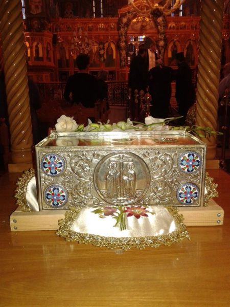 Απότμημα εκ του Ιερού Λειψάνου της Αγίας Ισαποστόλου Ελένης που φυλάσσεται στον ιστορικό Ιερό Ναό των Αγίων Κωνσταντίνου και Ελένης Ν. Ιωνίας. Μεταφέρθηκε από τους Πρόσφυγες της Μικρασιατικής Γης (Αλάγια), της οποίας γόνος δοξασμένος είναι και η Αγία Ελένη.