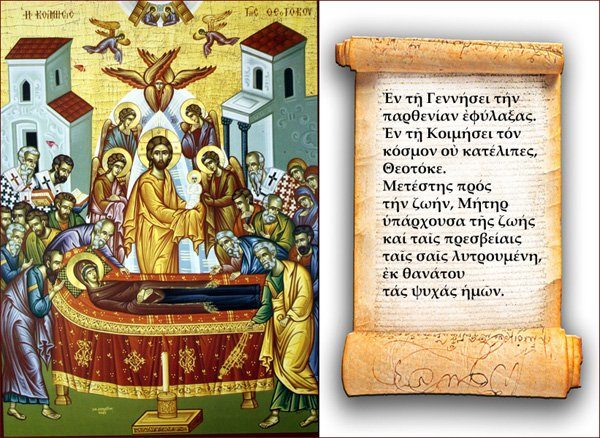 Aκούστε το απολυτίκιο της Κοιμήσεως της Θεοτόκου στο παρακάτω ηχητικό: