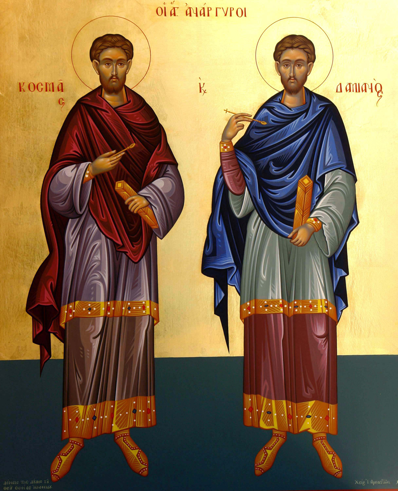 Οι δίδυμοι αδελφοί Κοσμάς και Δαμιανός γεννήθηκαν τον 3ο μ.Χ. αιώνα από γονείς Χριστιανούς και έζησαν στην περιοχή της Κιλικίας-Μικράς Ασίας. Σπούδασαν ιατρική και άσκησαν το ιατρικό επάγγελμα ταξιδεύοντας ανά την χώρα κηρύττοντας συγχρόνως τον Χριστιανισμό. Δεν έπαιρναν αμοιβή -αργύρια- κατά την άσκηση του επαγγέλματος γι΄ αυτό έλαβαν και την προσωνυμία Ανάργυροι.