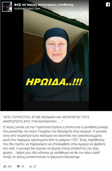 Δείτε την ανάρτηση που έγινε στο facebook για την Γερόντισσα Ειρήνη