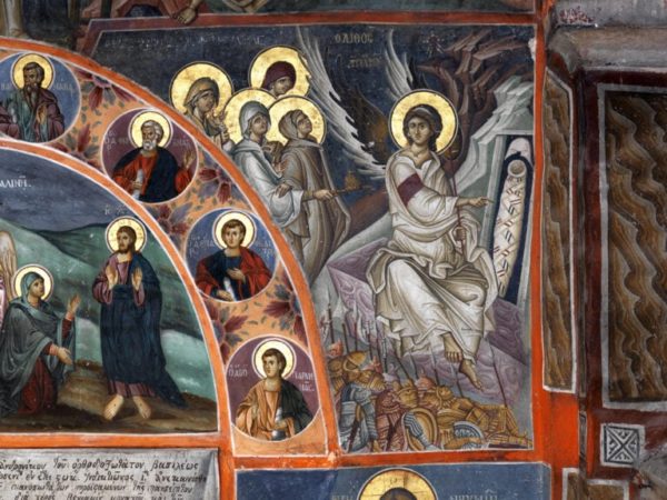 Το θάρρος των Μυροφόρων Γυναικών αμείβεται με τη θεία δωρεά του Θεού να είναι οι πρώτες στον κόσμο που βλέπουν τον Αναστημένο Ιησού. Kαλούνται μάλιστα να αναγγείλουν στους Μαθητές του Ιησού Χριστού την χαρμόσυνη είδηση για την Ανάστασή του.