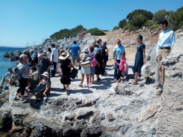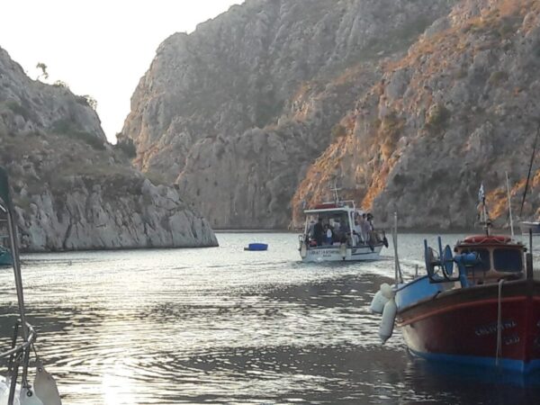 Ἡ ὁμάδα ξεκίνησε νωρὶς τὸ πρωὶ ἀπὸ τὸ λιμανάκι Βαθὺ, μὲ καΐκι . Ἡ διαδρομὴ ἦταν ὑπέροχη μέσα στὰ γαλαζοπράσινα κρυσταλλένια νερὰ καὶ τὸ ἀεράκι τοῦ Αἰγαίου μας.