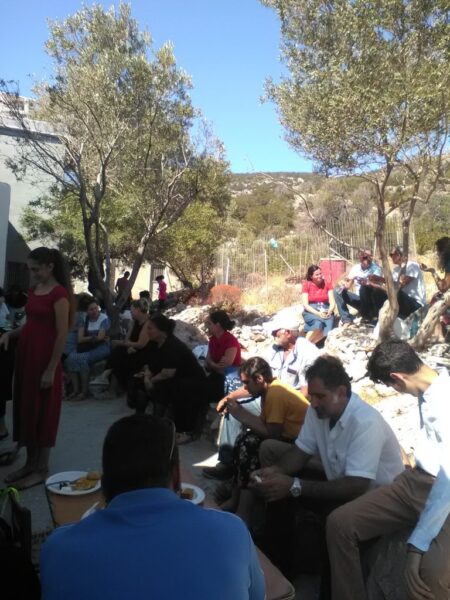 Ἔπειτα έλαβαν θέσεις στὴν ὄμορφη αὐλὴ καὶ ἀπολαύσαν τὸν καφὲ μὲ τὰ νοστιμότατα ἐδέσματα ποὺ εἶχε φροντίσει ὁ καθένας, μέσα στὸν καθαρὸ ἀέρα καὶ τὴν ὡραιότητα τοῦ τοπίου. Ἔτσι, ἤλθαν ἀκόμα πιὸ κοντὰ καὶ χαρήκανε τὴν ἐπικοινωνία μεταξύ τους.