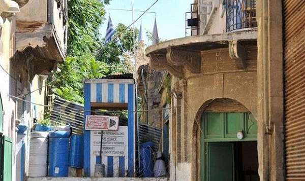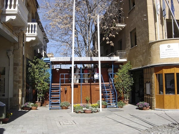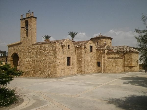 Ο δίκλιτος Ιερός Ναός του Αγίου Κασσιανού δίπλα στην πράσινη γραμμή στη Λευκωσία.