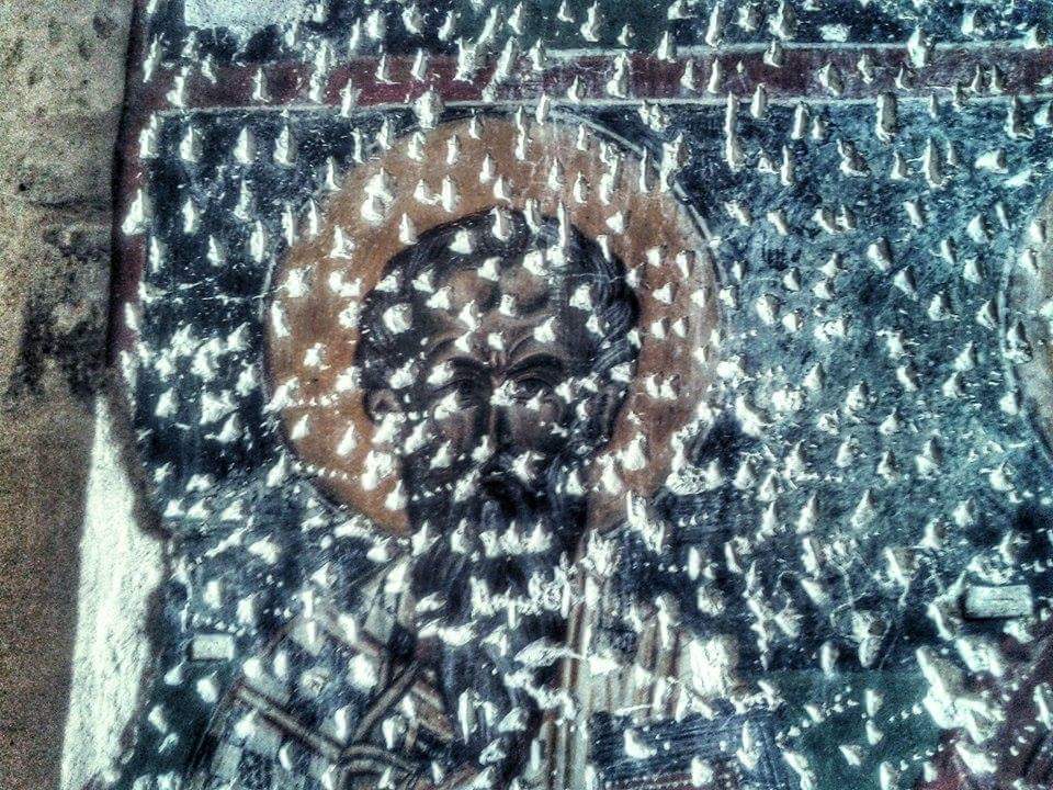 Σήμερα σώζονται οι τέσσερις και μικρό τμήμα του πέμπτου. Κανείς δεν σώζεται κάτω από τους μηρούς. Ο καλύτερα διατηρημένος άγιος βρίσκεται στον βόρειο τοίχο.Το λευκό ωμοφόριο είναι στολισμένο με κυανόμαυρους σταυρούς. Το πρόσωπο σχεδιασμένο ελεύθερα αποπνέει ηρεμία. Η μορφή χρονολογείται στην παλαιολόγεια περίοδο, τον 14ο αιώνα.