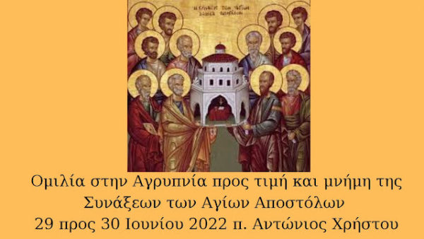 Ομιλία στην Αγρυπνία της Συνάξεως των Αγίων Αποστόλων