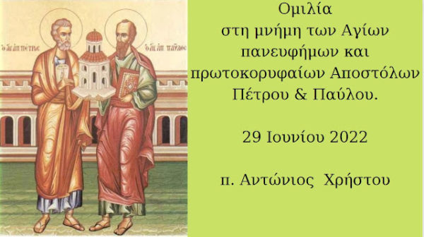 Ομιλία στη μνήμη των Αγίων Αποστόλων Πέτρου και Παύλου