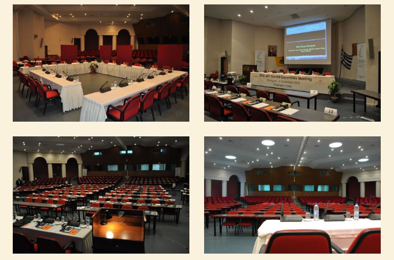 Η ΟΑΚ διαθέτει δύο κύριες συνεδριακές αίθουσες, χωρητικότητας 600/400 και 90/70 ατόμων αντίστοιχα χωρίς/με τραπέζια. Η μεγάλη συνεδριακή αίθουσα έχει 2 καμπίνες μεταφραστών και δύναται επίσης να χωριστεί σε 3 ανεξάρτητες αίθουσες (2X250 και 1X70 άτομα). Η ΟΑΚ διαθέτει επί πλέον 6 αίθουσες (1X40, 1X25, 2X20, 1X15 και 1X10 θέσεις με τραπέζια) που δύνανται να χρησιμοποιηθούν από ομάδες εργασίας, καθώς και γραφεία συσκέψεων, εκθεσιακούς χώρους και άνετους χώρους για υπαίθριες εκδηλώσεις.