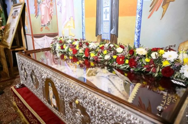 Το λείψανο του Αγίου Γέροντος Βησσαρίωνος ήταν στο σκευοφυλάκιο, έτσι στο φέρετρο, όπως το είχανε βγάλει.