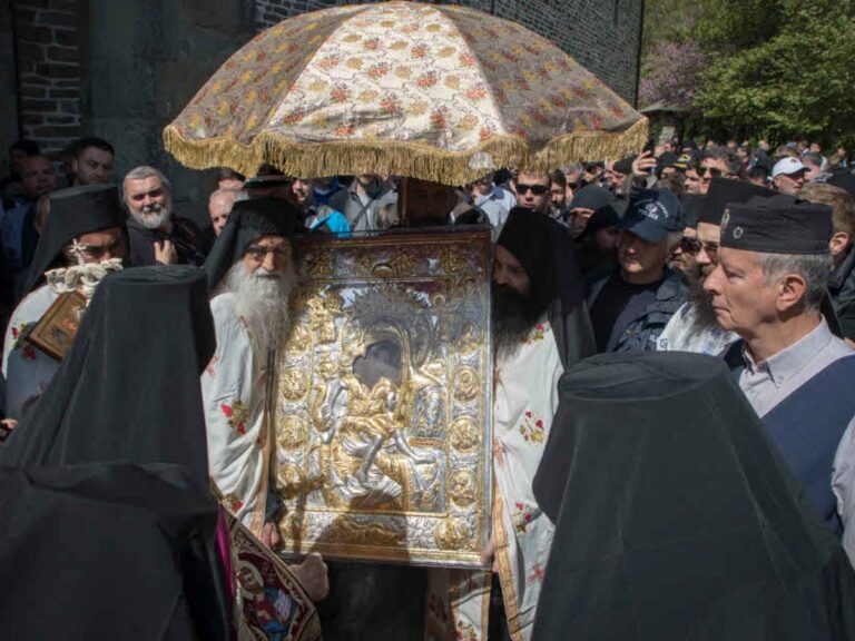 Με επικεφαλής τον ιερέα, γυρίζουν γύρω-γύρω το χωριό υπό τους ήχους και εδώ σημάντρων και με σχετικούς στίχους που συνεχώς επαναλαμβάνουν ρυθμικά οι εικονισματάρηδες παρακαλώντας για πλούσια παραγωγή: