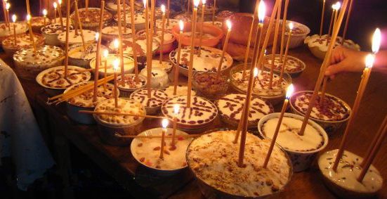 Τα Κόλλυβα δε που προσφέρουν οι πιστοί κατά τις ημέρες αυτές γίνονται μόνον από σιτάρι και έχουν την έννοια, ότι, όπως τα σπέρματα του σιταριού θάβονται στη γη, σαπίζουν και μετά από πολύ καιρό καρπίζουν όμορφα, αγέρωχα και ζωντανά στάχυα, έτσι και ο άνθρωπος: Κατά την Ορθόδοξη Πίστη θάβεται νεκρός στο χώμα, σαπίζει, για να εγερθεί αφθαρτοποιημένος στη Δευτέρα Παρουσία, τότε που, σύμφωνα με το Σύμβολο της Πίστης μας, «προσδοκούμε ανάστασιν νεκρών και ζωήν του μέλλοντος αιώνος».