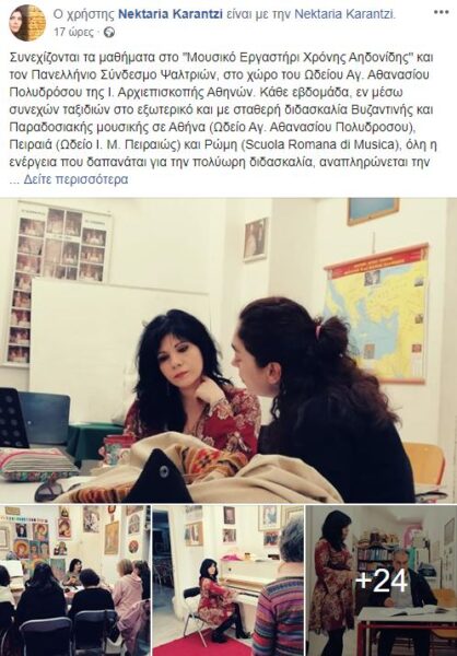 Συνεχίζονται τα μαθήματα στο “Μουσικό Εργαστήρι Χρόνης Αηδονίδης” και τον Πανελλήνιο Σύνδεσμο Ψαλτριών, στο χώρο του Ωδείου Αγ. Αθανασίου Πολυδρόσου της Ι. Αρχιεπισκοπής Αθηνών.
