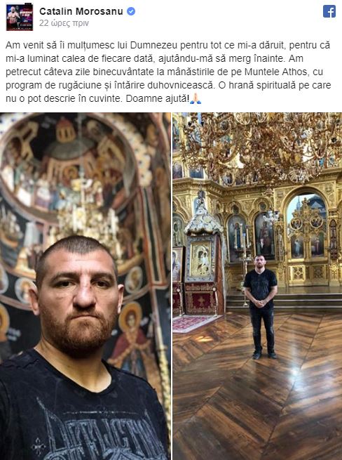 Το Άγιο Όρος προκειμένου να λάβει ευλογία επισκέφθηκε ο Ρουμάνος παγκόσμιος πρωταθλητής της Πυγμαχίας Καταλίν Μοροσάνου, όπως έγραψε ο ίδιος στην σελίδα του στο Facebook.
