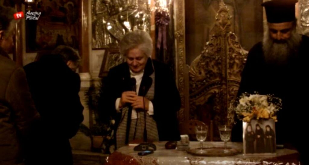 Πριν λίγα χρόνια, έλαβε χώρα άλλη μία από τις πολυάριθμες ομιλίες της μακαριστής Αθηνάς Σιδέρη στον Μητροπολιτικό Ναό Αίγινας, όπου και πάλι ομίλησε προς το ευσεβές ακροατήριο για τον πολυαγαπημένο Άγιο της ζωής της, Πορφύριο τον Καυσοκαλυβίτη. Η κα Αθηνά, κατά το πέρας, σηκώθηκε σεμνά, έκαμε τον σταυρό της και ξεκίνησε να κάμει μία αυτοσχέδια προσευχή, η οποία ιδιαιτέρως μάς συγκινεί και αξίζει κανείς να την παρακολουθήσει στο παρακάτω απόσπασμα: