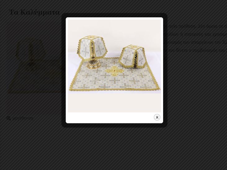 Τα δύο όμοια είναι διακοσμημένα μορφές αγγέλων ή σταυρούς και χρησιμοποιούνται για να σκεπάζουν, το μεν Άγιο Ποτήριο, (που του δίνετε ο συμβολισμός των σπαργάνων του Χριστού κατά την γέννηση), το δε άλλο για να σκεπάζει το Άγιο Δισκάριο (που του δίνετε ο συμβολισμός του Σουδαρίου που κάλυπτε το νεκρό σώμα του Ιησού κατά την αποκαθήλωση).