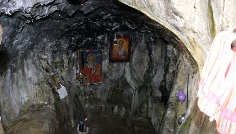 Από την αυλή της εκκλησίας ,κατεβαίνοντας τη πλαγιά από το δυτικό μέρος ,συναντούμε ένα μικρό σπηλαίο μέσα σε βράχους ,που προχωρεί κάτω από την εκκλησία.