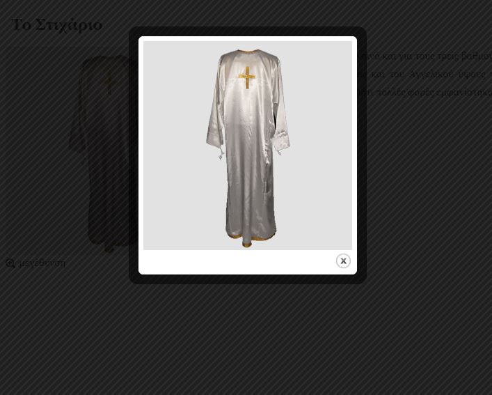 Είναι μακρύς χιτώνας, άμφιο κοινό και για τους τρεις βαθμούς της Ιερωσύνης. Το χρώμα του παλαιά ήταν λευκό, σύμβολο της αγνότητας και του Αγγελικού ύψους της Ιερωσύνης. Το Στιχάριο φανερώνει την φωτεινή στολή των Αγγέλων, διότι πολλές φορές εμφανίστηκαν Άγγελοι ντυμένοι με αυτό το λευκό ένδυμα.