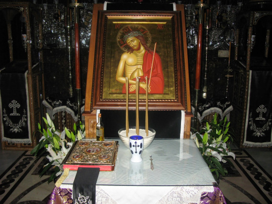 Για την τέλεση του μυστηρίου τοποθετείται πάνω σε κάποιο τραπέζι το ευαγγέλιο, μικρή εικόνα του Χριστού, κανδήλα αναμμένη και δοχείο με αλεύρι, δίπλα στο οποίο ανάβονται επτά κεριά. Η κανδήλα πρέπει να είναι καθαρή και μέσα τοποθετείται αγνό λάδι, ένδειξη καθαρής και ολοπρόθυμης προσφοράς στον Θεό. Γι’ αυτό και ο καλός Σαμαρείτης στην ομώνυμη παραβολή, περιποιείται στοργικά τον τραυματία ρίχνοντας στις πληγές του λάδι και κρασί. Το λάδι, μετά τις ευχές των ιερέων, δεν είναι πια κοινό λάδι· όπως και στη βάπτιση: το νερό της κολυμβήθρας, μετά τις ευχές του λειτουργού, δεν είναι πια κοινό νερό.