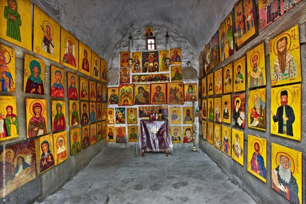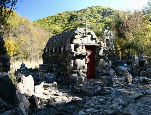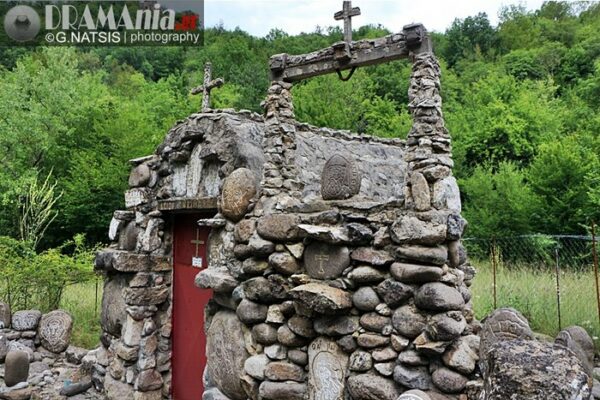 Ένα ξωκλήσι σαν από παραμύθι φτιαγμένο από ποταμίσιες πέτρες, κάποιες χαραγμένες με το καλέμι, άλλες ζωγραφισμένες σε κάδρα και μια ταμπέλα: «Παρακαλώ μην αφήνετε χρήματα».