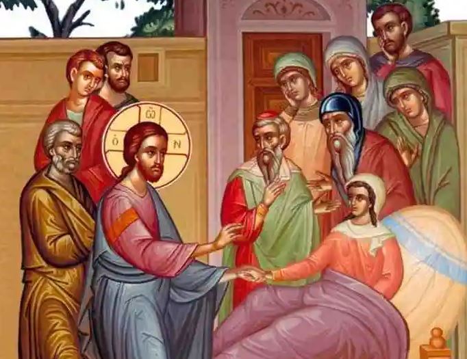 Την προ παρελθούσα προηγούμενη Κυριακή ακούσαμε στην ευαγγελική διήγηση για τη θεραπεία του δαιμονιζομένου νέου στη χώρα των Γεργεσηνών, όπου οι κάτοικοι εκεί βλέποντας το θαύμα αυτό, παρακάλεσαν τον Ιησού Χριστό να φύγει από τα όρια της περιοχής τους. Φεύγοντας ο Ιησούς Χριστός από την περιοχή των Γεργεσηνών φτάνει στην Καπερναούμ, όπου γίνεται δεκτός με θέρμη και χαρά από τους κατοίκους οι οποίοι σχημάτισαν μια λαοθάλασσα για να τον υποδεχθούν. Μεταξύ όλων αυτών των ανθρώπων που ανέμεναν τον Ιησού, βρίσκονταν και άνθρωποι οι οποίοι κατείχαν μια εξέχουσα κοινωνική θέση ανάμεσα στην πόλη της Καπερναούμ, όπως ο αρχισυνάγωγος Ιάειρος. Μπορούμε να δούμε εδώ αλλά και σε άλλες ευαγγελικές περικοπές ότι η διδασκαλία και τα θαύματα που επιτελούσε ο Χριστός δεν απευθύνονταν μόνο στον απλό λαό και τους φτωχούς, όπως πολλοί πιστεύουν, αλλά απευθύνονταν σε όλες τις βαθμίδες των ανθρώπων της κοινωνίας. Εδώ όμως η περικοπή εστιάζεται στον αρχισυνάγωγο Ιάειρο ο οποίος ζήτα από τον Χριστό να θεραπεύσει την μοναχόκορη του, που ήταν βαριά άρρωστη.