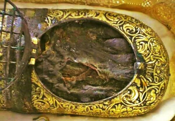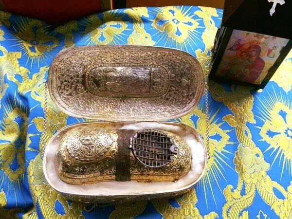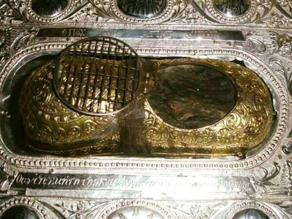 Απότμημα του αδιάφθορου και με θερμοκρασία ζωντανού οργανισμού αριστερού ποδός (πέλμα) της Αγίας Άννας που βρίσκεται στην ομώνυμη Σκήτη του Αγίου Όρους. Διακρίνονται καθαρά τα νεύρα και τα δάχτυλα του Ιερού Λειψάνου της “Γιαγιάς”, όπως αποκαλούν την Αγία Άννα στο Αγιώνυμο όρος.