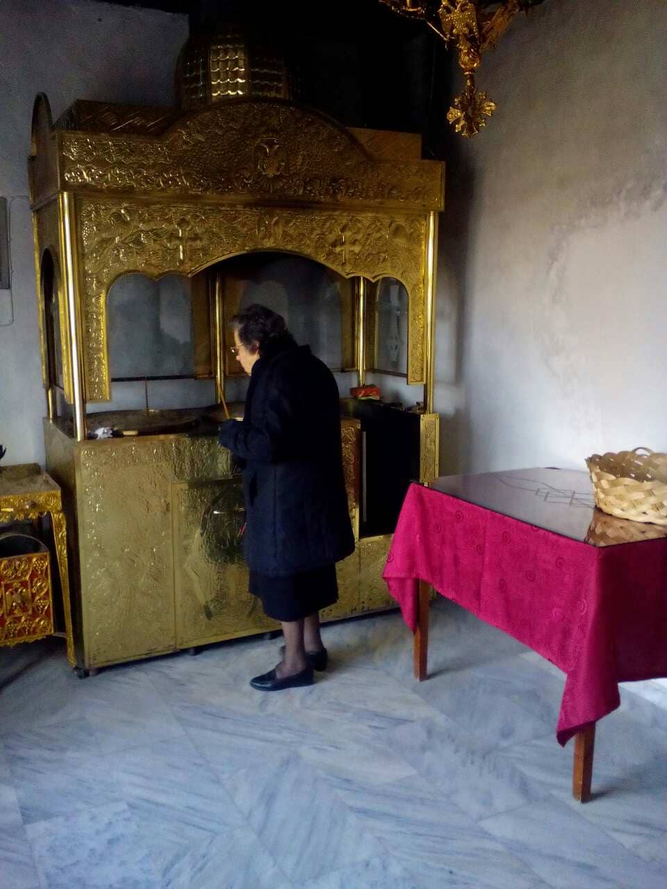 – Κάνε καλά τον Μίμη μου Άγιε, εσύ που τράβηξες τόσα μαρτύρια για τη χάρη του Χριστού μας, είπε κι ο κόσμος άνοιγε να περάσει. Δεν έβλεπε μπροστά της μόνο σκεφτόταν τα λόγια της μαμάς της Ευτυχίας “ο Αγ. Χαράλαμπος είναι μεγάλος Άγιος παιδί μου”.