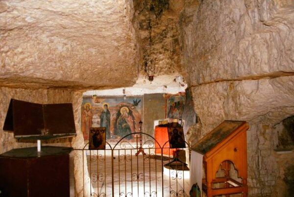 Στη Μονή Χοζεβά στο Μοναστήρι της Θεοτόκου στους Αγίους Τόπους βρίσκεται το σπήλαιο όπου αποσύρθηκε ο πατέρας της Υπεραγίας Θεοτόκου, Άγιος Ιωακείμ. Σαράντα μερόνυχτα έμεινε εδώ, νηστεύοντας, προσευχόμενος να του χαρίσει ο Θεός ένα παιδί, επειδή ήταν άτεκνος και ο Θεός άκουσε τις προσευχές του και του χάρισε την Παναγία. Στο ίδιο σπήλαιο πριν από χρόνια πολλά κρύφτηκε ο Προφήτης Ηλίας για να γλιτώσει από την οργή και την καταδίωξη του βασιλιά Αχαάβ και της συζύγου του, Ιεζάβελ, οι οποίοι είχαν επιβάλλει στο βασίλειο τη λατρεία του Βάαλ. Ο Προφήτης Ηλίας έμεινε εκεί για μήνες και τρεφόταν με φαγητό που του έφερναν κοράκια. Συγκεκριμένα, κοράκια του έφερναν πρωί και βράδυ, ψωμί και κρέας, ενώ νερό έπινε από το χείμαρρο Χοράθ.