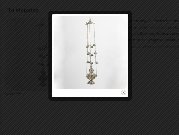 Το θυμιατό είναι μεταλλικής κατασκευής και αποτελείται από τέσσερις αλυσίδες και 1 κυάθιο σε σχήμα Ναού.