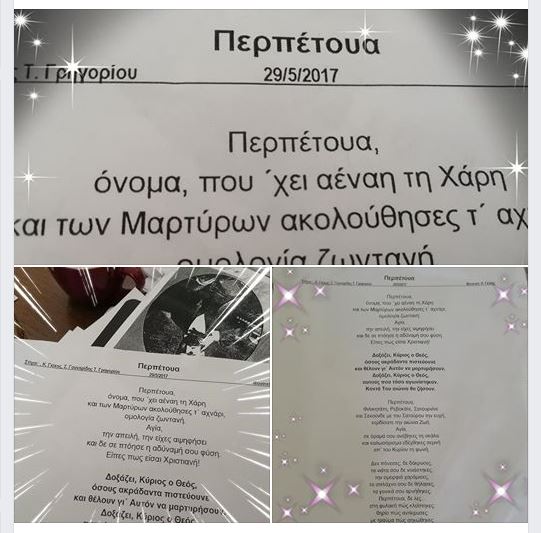 ΣΑΝ ΣΗΜΕΡΑ, πριν 2 χρόνια, 29 Μαϊου 2017, εκτυπώθηκε στη σχεδόν τελική του μορφή το τραγούδι της Αγίας Περπέτουα. Από τότε, έγιναν πολλά στη μνήμη της, όλα, όμως, τόσο λίγα για να εκφράσουν την αγάπη τους για εκείνην, όλοι εκείνοι οι συντελεστές ετούτης της τρισευλογημένης προσπάθειας.