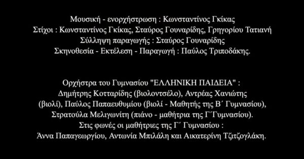 Τραγούδι: ”Περπέτουα” 29/5/2017. Στίχοι: Κ. Γκίκας, Σ. Γουναρίδης, Τ. Γρηγορίου. Μουσική: Κ. Γκίκας. Συμμετέχει η χορωδία-ορχήστρα του Γυμνασίου Αμαρουσίου της “ΕΛΛΗΝΙΚΗΣ ΠΑΙΔΕΙΑΣ. Παρακολουθήστε: