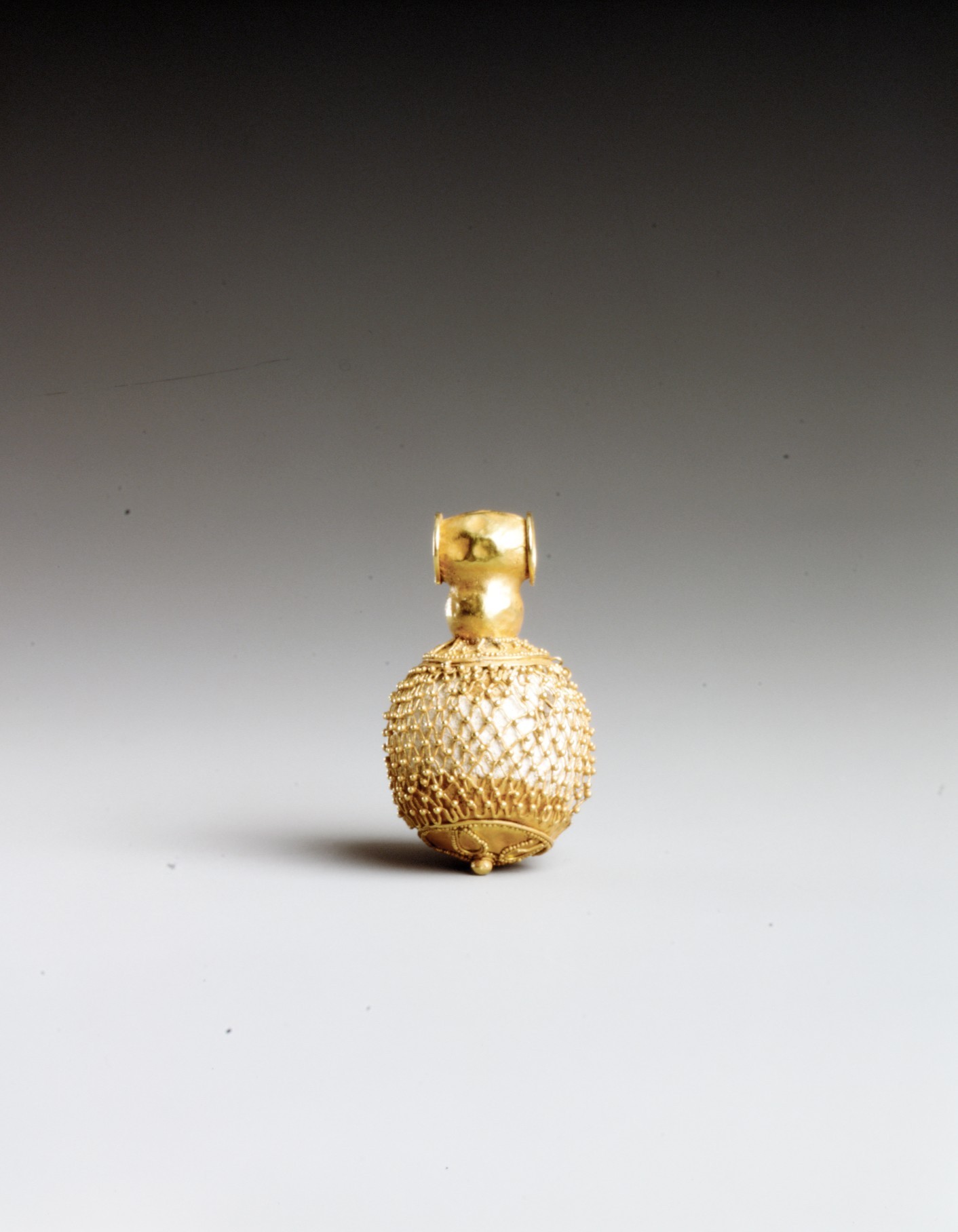 Χρυσό περίαπτο περιδεραίου. Ύψος 3,8 εκ. 5ος-4ος αι. π.Χ.
