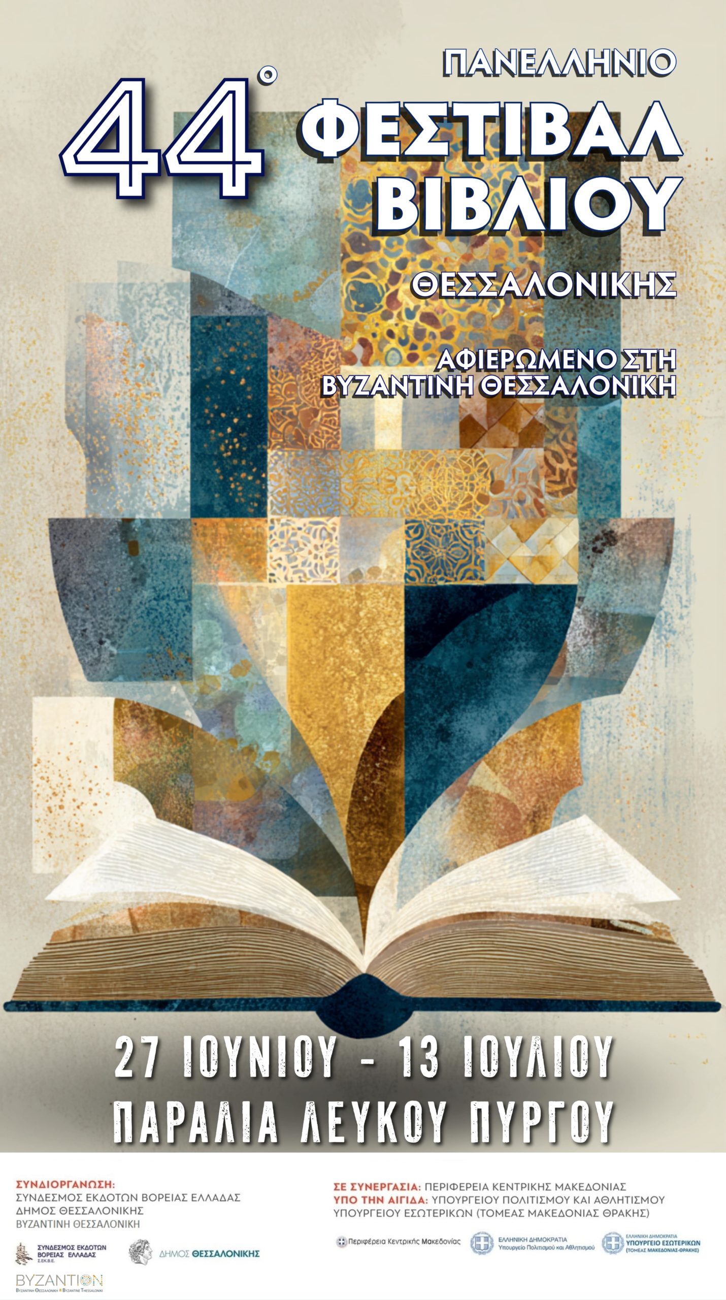 Το 44ο Πανελλήνιο Φεστιβάλ Βιβλίου ανοίγει τις πύλες του στις 27 Ιουνίου και μέχρι τις 13 Ιουλίου θα αποτελέσει πόλο έλξης για τους Θεσσαλονικείς, αλλά και πολλούς επισκέπτες που θα έχουν τη δυνατότητα, στη γνώριμη και πανέμορφη περιοχή της Νέας Παραλίας με θέα το Θερμαϊκό, μπροστά στο άγαλμα του Μεγάλου Αλεξάνδρου, να συμμετέχουν στη γιορτή των γραμμάτων και των τεχνών.