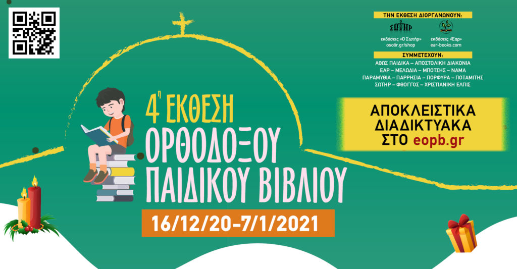 Για τέταρτη συνεχή χρονιά, οι εκδόσεις «Ο Σωτήρ» σε συνεργασία με τις εκδόσεις «Έαρ» διοργανώνουν Έκθεση Ορθόδοξου Παιδικού Βιβλίου. Φέτος, η έκθεση λειτουργεί διαδικτυακά με διαδραστικό τρόπο, φέρνοντας στο σπίτι κάθε οικογένειας δεκάδες επιλεγμένα χριστουγεννιάτικα βιβλία.