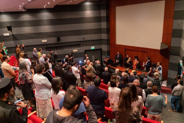 Η εκδήλωση έλαβε χώρα στο Αμφιθέατρο Jean Monnet, των κεντρικών εγκαταστάσεων του Πανεπιστημίου Λευκωσίας και άρχισε με την Ακολουθία του Αγιασμού, την οποία τέλεσε ο Πανιερώτατος Μητροπολίτης Κύκκου και Τηλλυρίας κ. Νικηφόρος, υπό την υψηλή επιστασία του οποίου λειτουργεί το Τμήμα Θεολογίας.