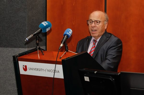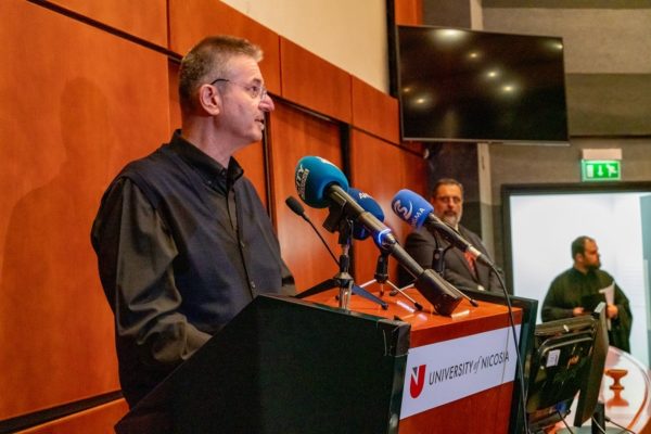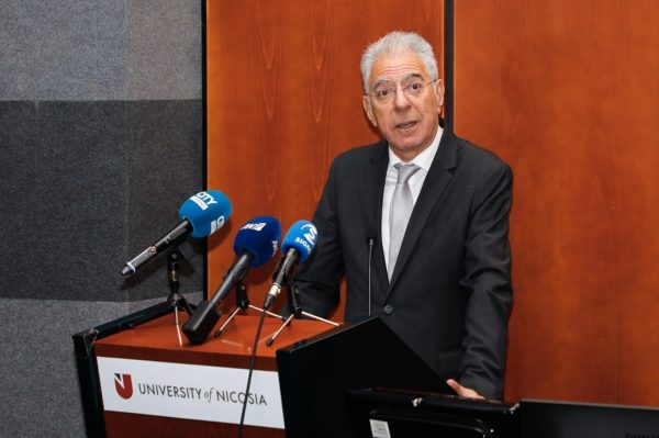 «Στο Τμήμα Θεολογίας του Πανεπιστημίου Λευκωσίας, συμπορευόμαστε με τις κλασικές ιστορικές Θεολογικές Σχολές Αθηνών και Θεσσαλονίκης, αλλά και όπου υπάρχουν Διεθνώς, αξιοποιώντας στο έπακρο τις εξειδικευμένες Θεολογικές Σπουδές και γνώσεις Καθηγητών Θεολογίας, αδιαμφισβήτητου αξίας και κύρους. Αυτό το Τμήμα Θεολογίας του Πανεπιστημίου Λευκωσίας, κ. Υπουργέ της Παιδείας, προσφέρει Παιδεία και Πολιτισμό στην Κύπρο, την Ελλάδα και την Οικουμενική Ορθοδοξία, συμμετέχει στα εκκλησιαστικά, κοινωνικά, πολιτιστικά, ανθρωπιστικά και εθνικά θέματα του τόπου μας και χαιρόμαστε, που μας τιμάτε σήμερα με την παρουσία σας, ένας καταξιωμένος άνθρωπος της Παιδείας και του Πολιτισμού».