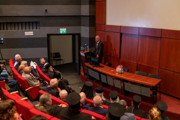 Το πνευματικό μέρος της όλης εκδήλωσης ολοκληρώθηκε με τη σύντομη, αλλά ιδιαίτερα σημαντική και επίκαιρη ομιλία του τ. Κοσμήτορα της Θεολογικής Σχολής του Πανεπιστημίου Αθηνών και Καθηγητή του Τμήματος Θεολογίας του Πανεπιστημίου Λευκωσίας κ. Απόστολου Νικολαΐδη, με θέμα: «Η προσφορά της Θεολογίας στη σύγχρονη πολυτάραχη εποχή μας».